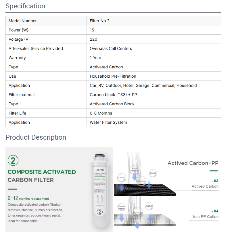 Composite Activated Carbon Filter pp T33 Water Filter Active Carbon Water Filter