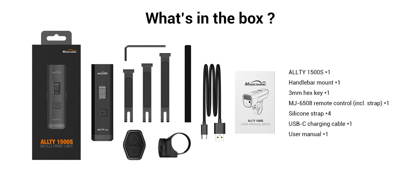 Magicshine ALLTY 1500S Bike Lights for Night Riding, Battery Replaceable | USB-C Rechargeable | Wireless &APP Control Compatible with Garmin/GoPro Mount for Road, MTB, Commuter Rider