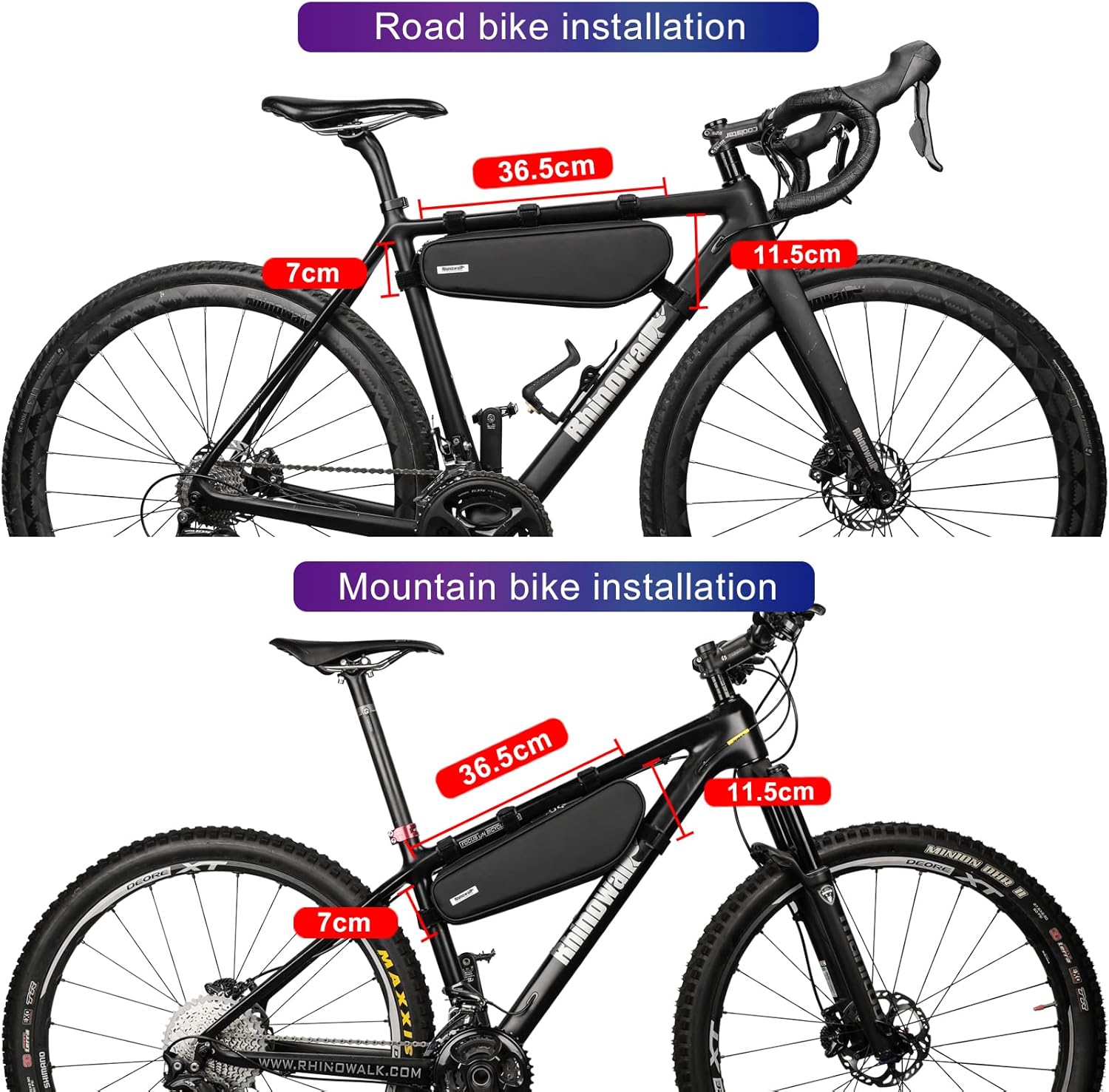 Rhinowalk Bike Frame Bag - Triangle Front Bag Under Top Tube Storage X21656