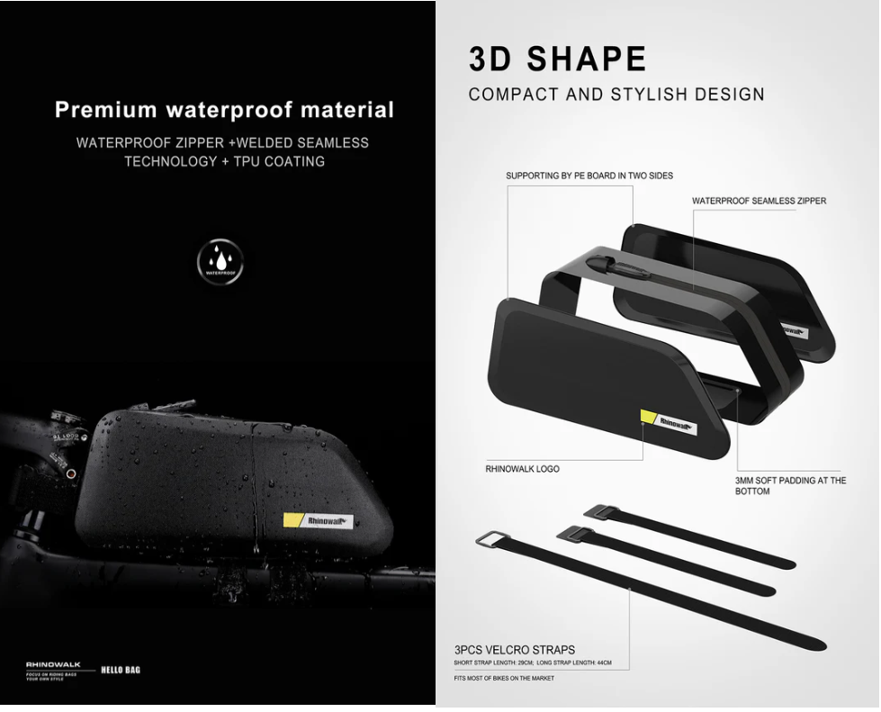 Rhinowalk Top Tube Bag - Stable & Waterproof Professional Cycling Accessory K32 1.3L